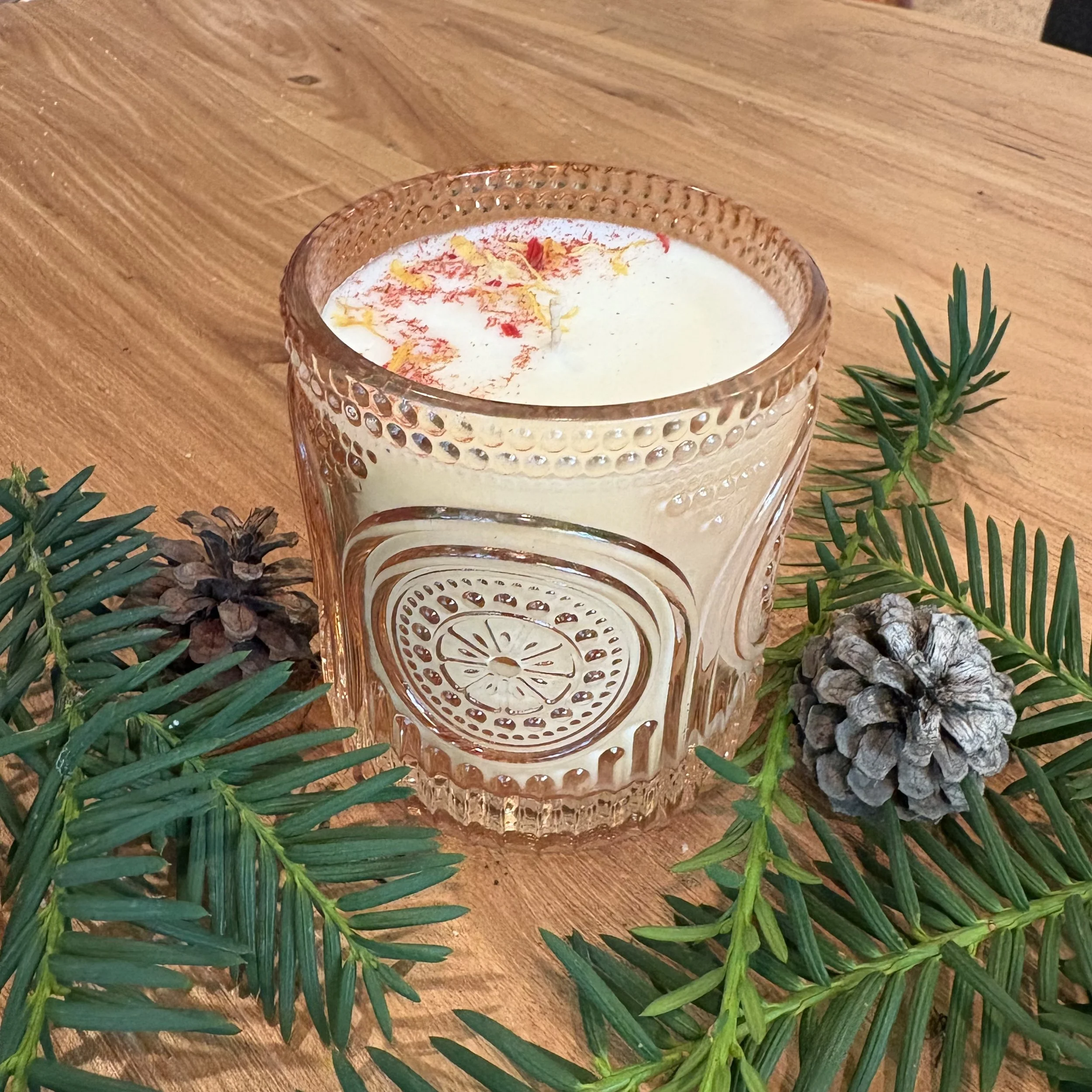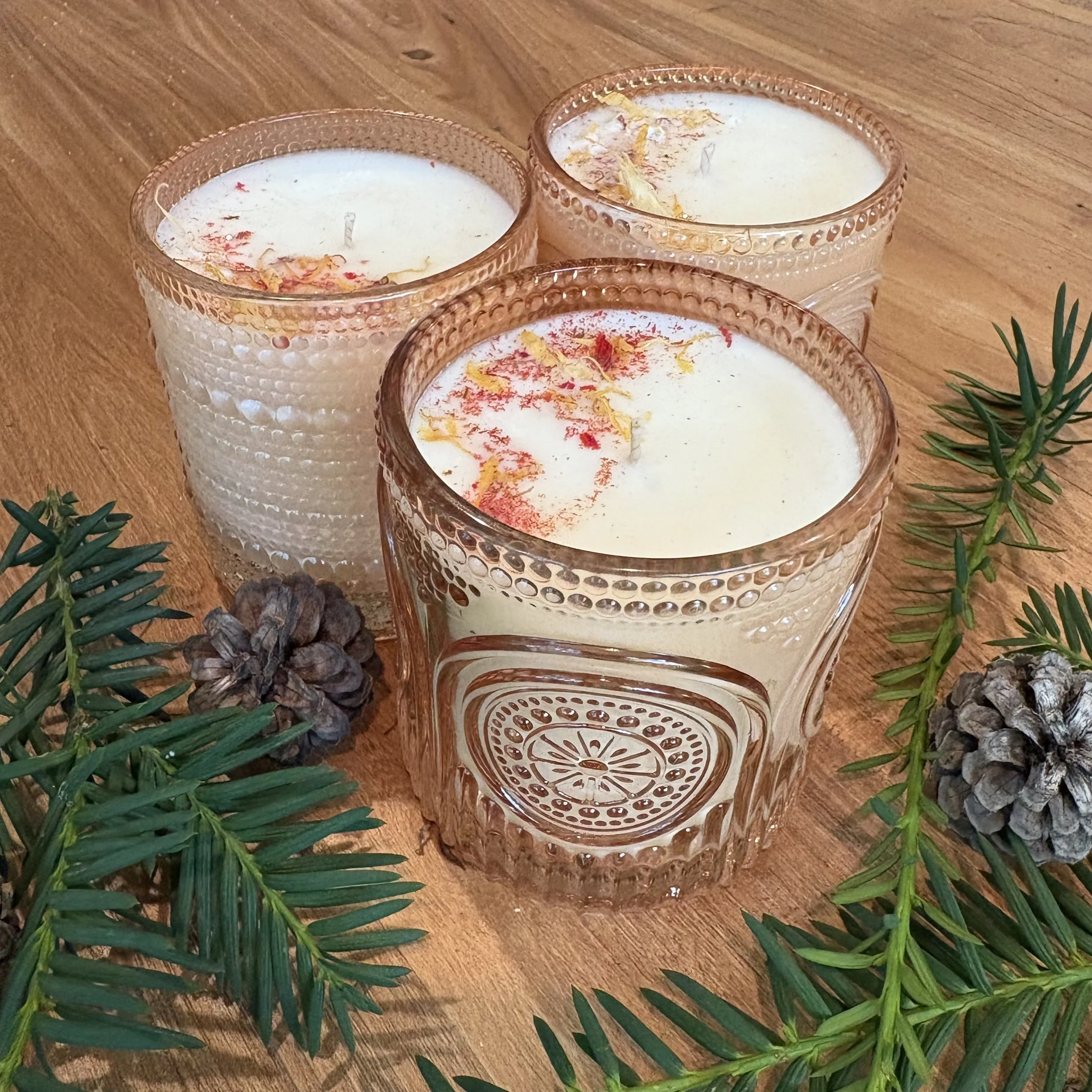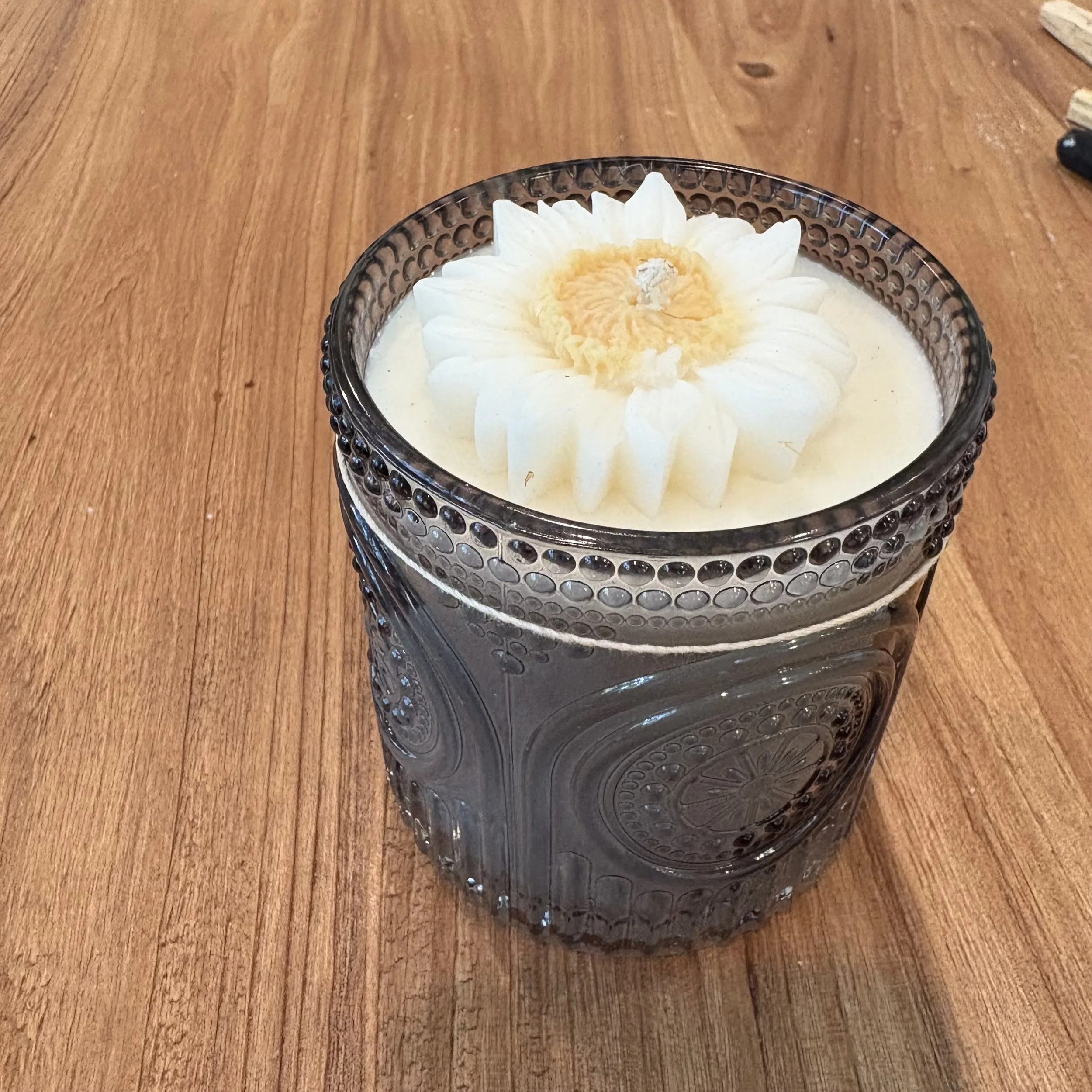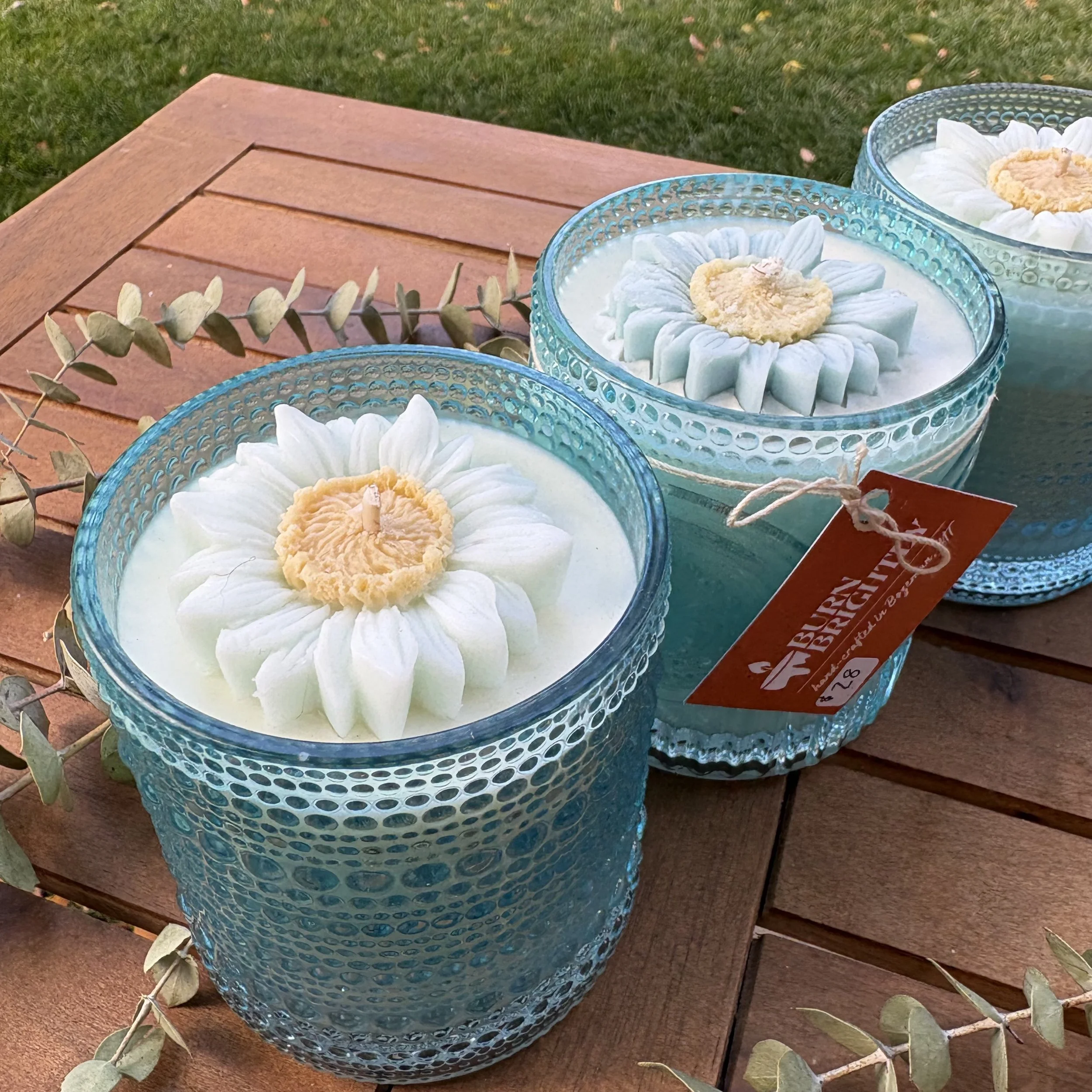Made with 100% soy wax from U.S.-grown soybeans, and always paraben- and phthalate-free for a clean, long-lasting burn. Finished with hand-crafted wax flowers that will melt with the candle.